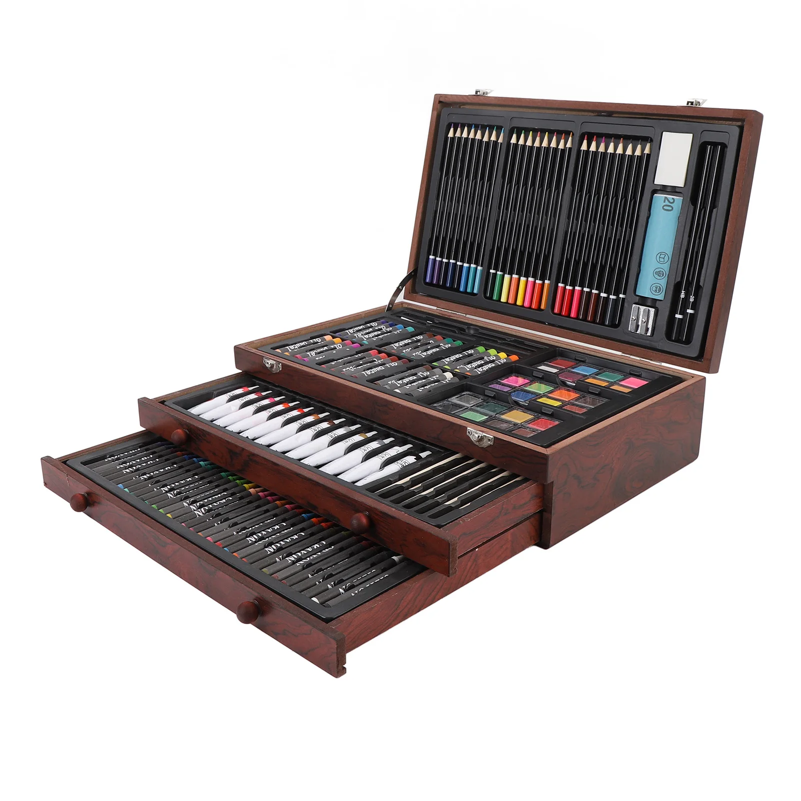 142PCS Set Wooden Art Set 24PCS Colored Pencils 24PCS Oil Pastels 60PCS Crayons Watercolor Paints Erasers Pencil Rollers and Sketchbooks