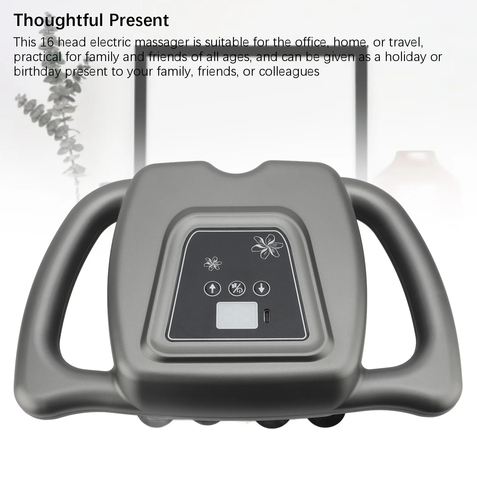16 Heads Massager 99 Gears Adjustment Rechargeable Massage Device for Back Shoulder Neck Gray
